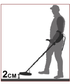 在調(diào)整地面平衡過程和靈敏度設(shè)置后,可以通過將搜索線圈提離地面2厘米并左右掃掠,使其與地面平行來開始搜索。