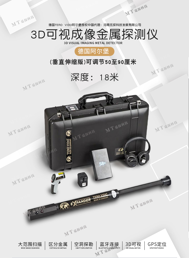 使用德國(guó)3D探地成像系統(tǒng),您可以追蹤大的金屬,黃金和寶藏。深度可達(dá)18米。此外,3D掃描還可以看到隧道,房間,地窖和地下空洞等。