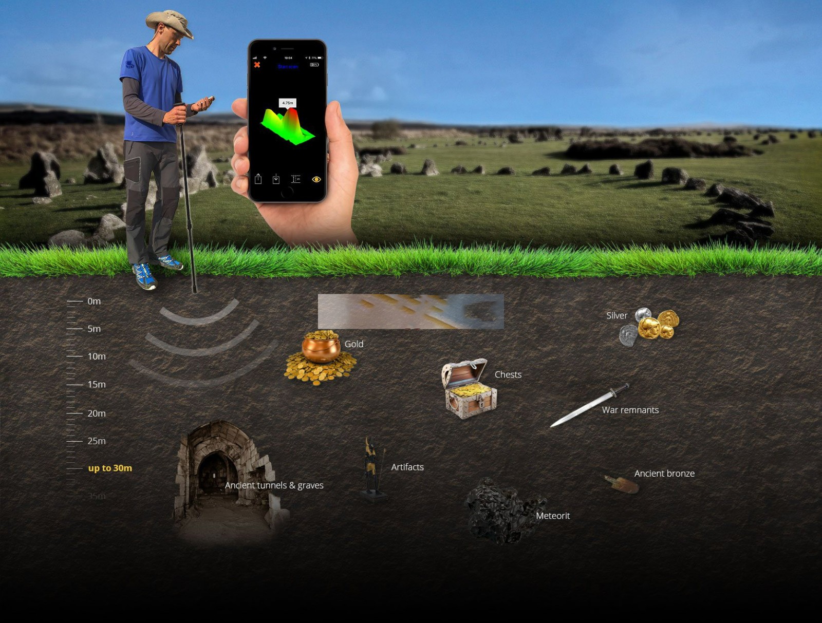 斯洛文尼亞尋寶者拐杖式可視成像儀3D成像地下金屬探測(cè)器掃描儀